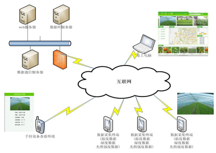 终端采集、视频采集、存储、远程反控、农产品档案查询、农产品生长标准数据库、信息发布平台、网上订单